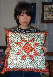 | Porch with Log Cabin by misako Yoshida | Pillow case with Flower Basket by MisakoYoshida | Pillow case with Ohio Star yoshiko Yuuki | |||