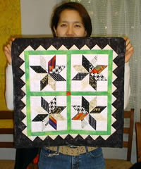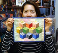 | Wall hanging with Hawaiian quilt by Tomoko Toyama | Mini wall hanging for mom with Baby Blocks by Harumi Minami | |||