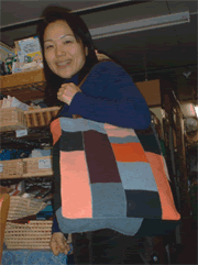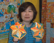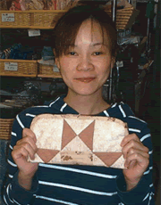 | Tout Bag with One Patch by Kana Kinoshita | Mat for Dog with Drunkard's Path by Yuriko Watanabe | Porch with Ohio Star by Terue Fukuda | |||