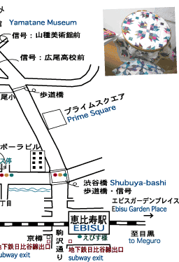 恵比寿駅から〜JR山手線、埼京線、地下鉄日比谷線、恵比寿駅下車、徒歩8分