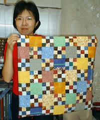 | Cushion cover with Double Ninepatch by Mariko Imauchi | Machine quilted Bag by Kana Kinoshita | ||