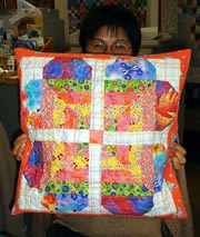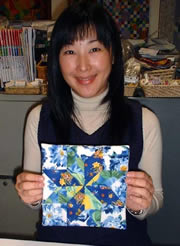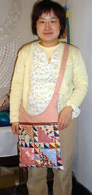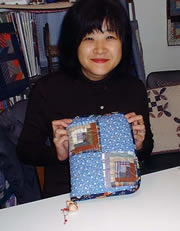 | My first quilt with Log cabin by Naoko Ohtani | Pillow case with Le Moyne Star by Akiko Namekawa | Shoulder bag with one patch by Harumi Minami | |||