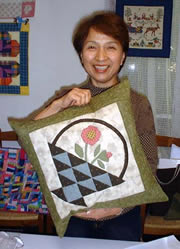 | Porch with Log Cabin by misako Yoshida | Pillow case with Flower Basket by MisakoYoshida | Pillow case with Ohio Star yoshiko Yuuki | |||