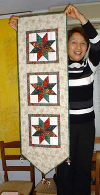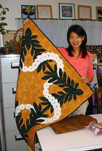 | Wall hanging with Hawaiian quilt by Tomoko Toyama | Mini wall hanging for mom with Baby Blocks by Harumi Minami | |||
