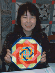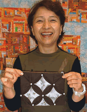 | Tout Bag with One Patch by Kana Kinoshita | Mat for Dog with Drunkard's Path by Yuriko Watanabe | Porch with Ohio Star by Terue Fukuda | |||