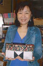 | Porch with Double Interlock Square by Shoko Nakano | Porch with Cathedral Window by Misako Yoshida | Tout Bag with Ohio Star by Kyoko Ogura | |||